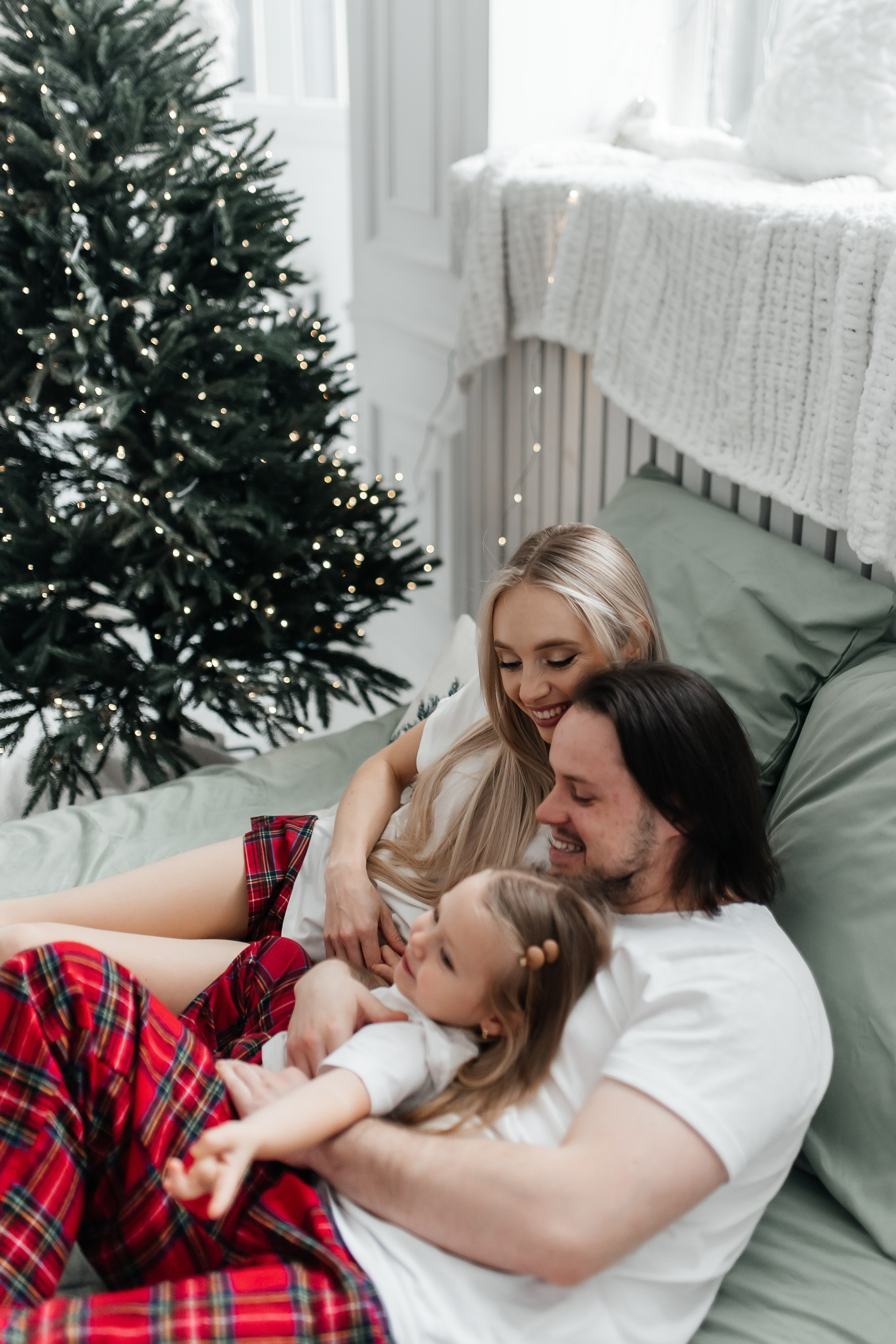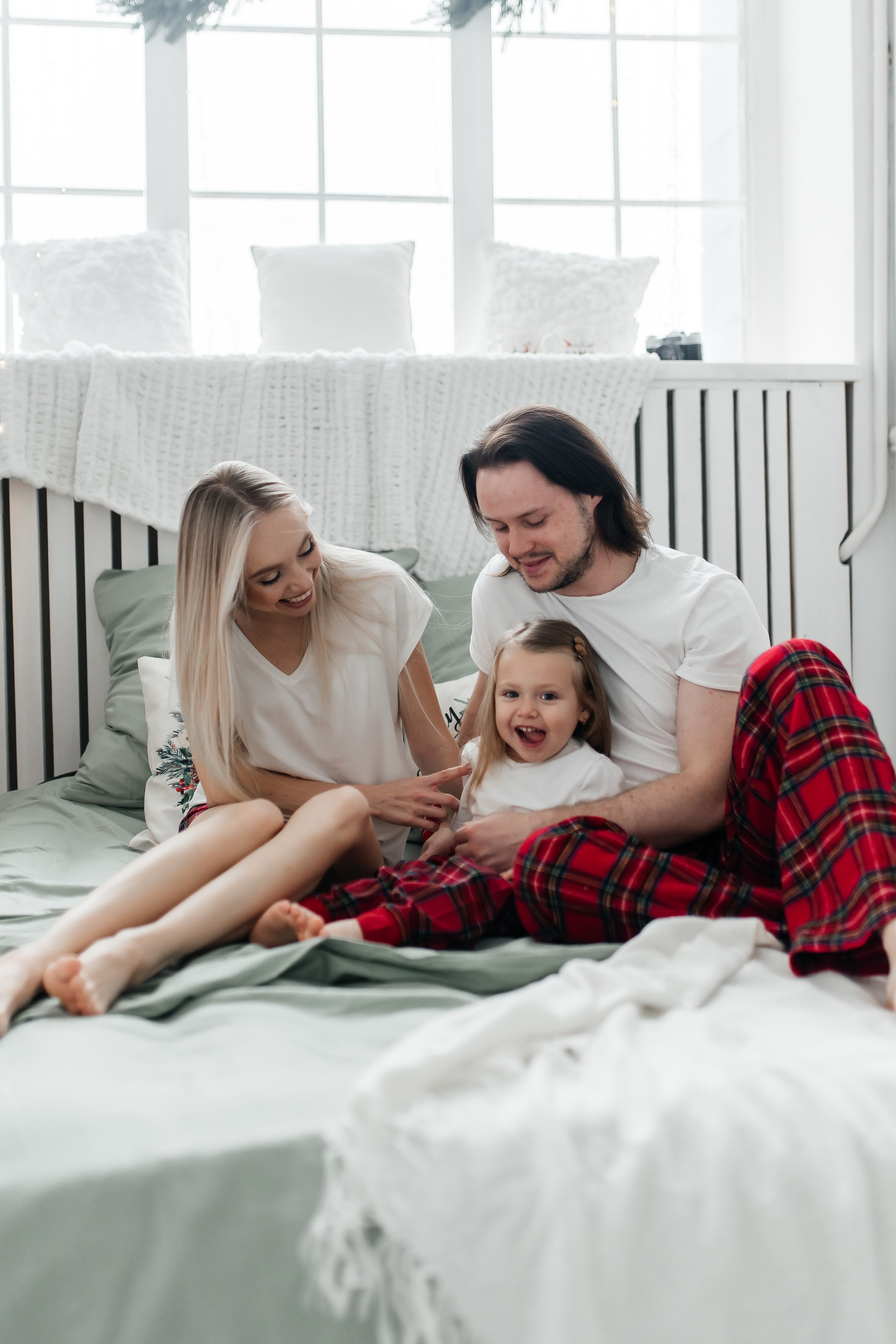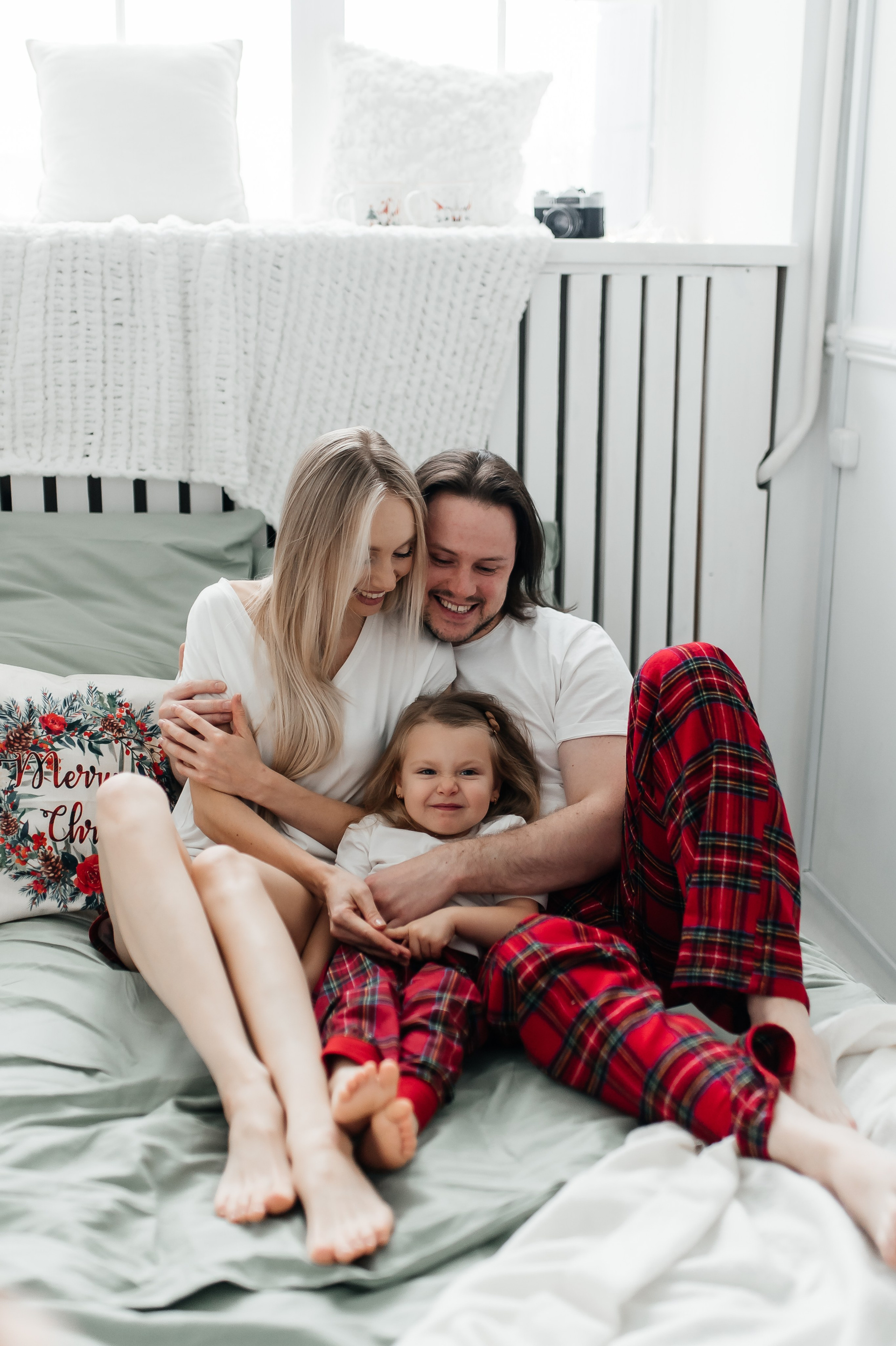 Мама, папа, дочь (атласные пижамы)